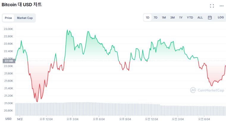 15일 토큰포스트마켓에 따르면 비트코인은 8시 40분 기준 전날 대비 0.76% 하락한 2만2151달러(약 2643만원)에 거래되고 있다.