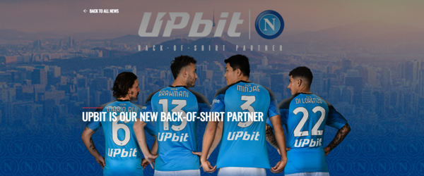 두나무가 이탈리아 축구클럽 'SSC 나폴리'와 파트너십을 체결했다. 이에 따라 나폴리 선수들은 업비트 로고가 새겨진 유니폼을 착용하게 된다. 특히 나폴리엔 김민재 선수가 소속 돼 있어 더욱 화제가 되고 있다.