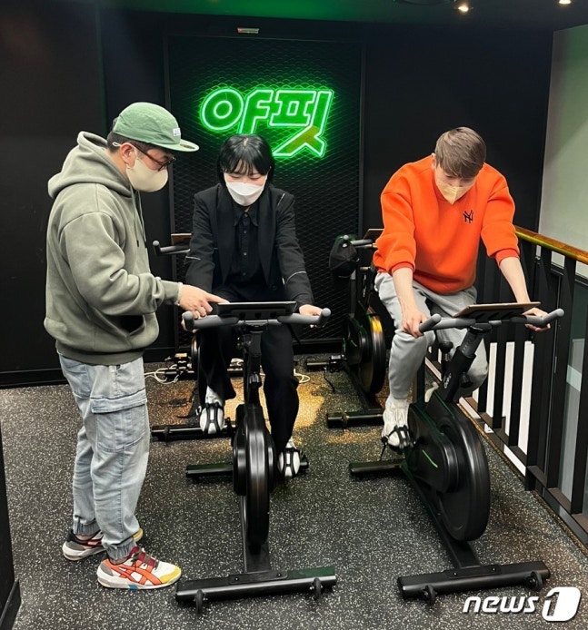 지난달 30일 오후 1시 서울 강남구 야핏 스튜디오에 들어가자 태블릿PC가 설치된 사이클 기구가 눈에 띄었다. 이날 방문한 야핏 스튜디오에서 야핏 사이클을 직접 타고 체험해볼 수 있었다. 야핏 스튜디오는 주로 유튜버와의 협업, 촬영 등에 사용되고 있다.
