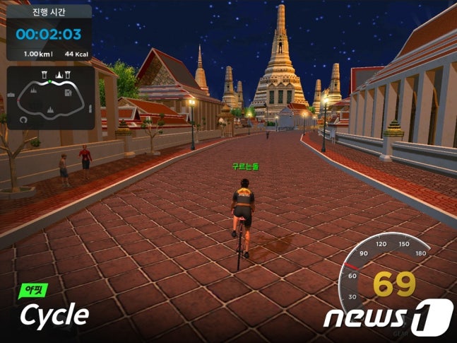 체험 시작후 언덕 지형에 이르자 캐릭터의 움직임이 느려졌다. 평지에 있지만 캐릭터가 페달을 밟는 속도가 느려지니 언덕을 오르는 느낌이 들었다. 평소 메타버스에 회의적이던 취재진도 높은 몰입감으로 인해 몇 년간 해외여행을 못 간 아쉬움을 달랠 수 있었다.