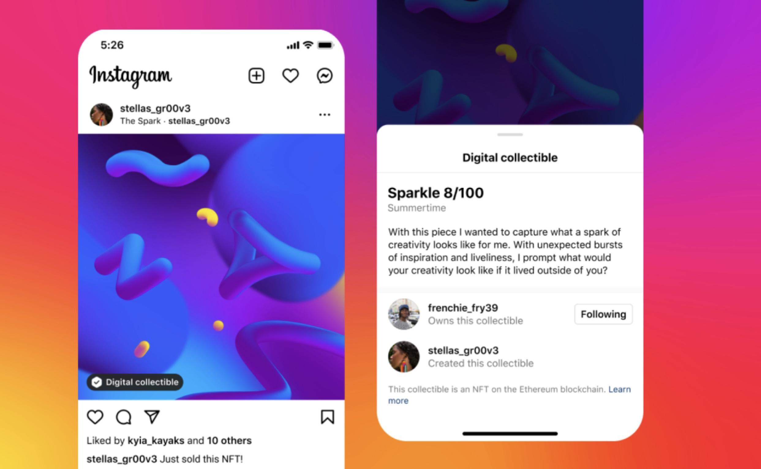 인스타그램은 지난 5월부터 미국 일부 크리에이터를 대상으로 NFT 실험을 진행해왔는데, 이제 아프리카, 아시아태평양, 중동, 아메리카 100여 개국으로 인스타그램 NFT 서비스를 확대한다. 인스타그램 NFT 기능은 수수료 없이 무료로 이용할 수 있다.