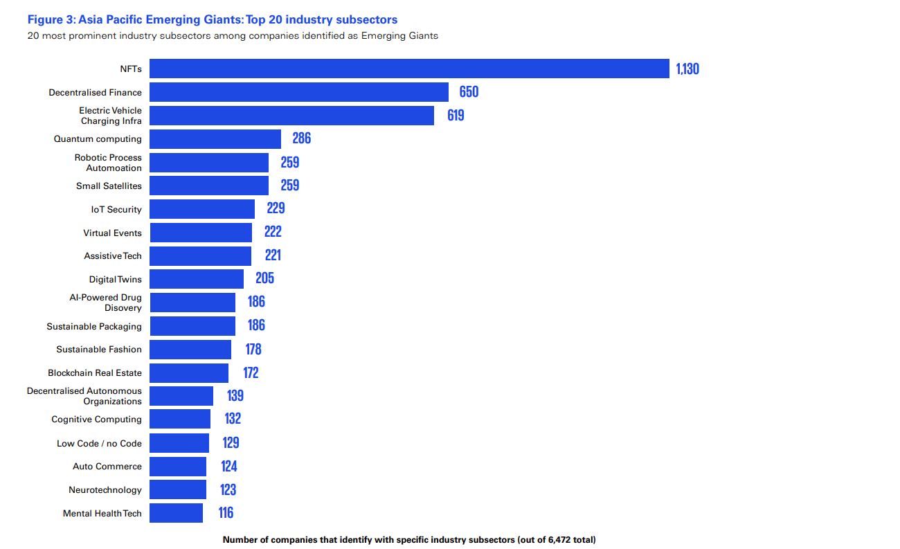 세계 4대 회계컨설팅 기업인 KPMG와 HSBC 은행은 중국, 인도, 일본, 호주, 싱가포르, 한국 등 12개 아시아 주요 국가에 위치한 스타트업 중 기업 가치가 5억 달러에 달해 '신흥 대기업'으로 평가받는 6472개 스타트업을 조사했다.
