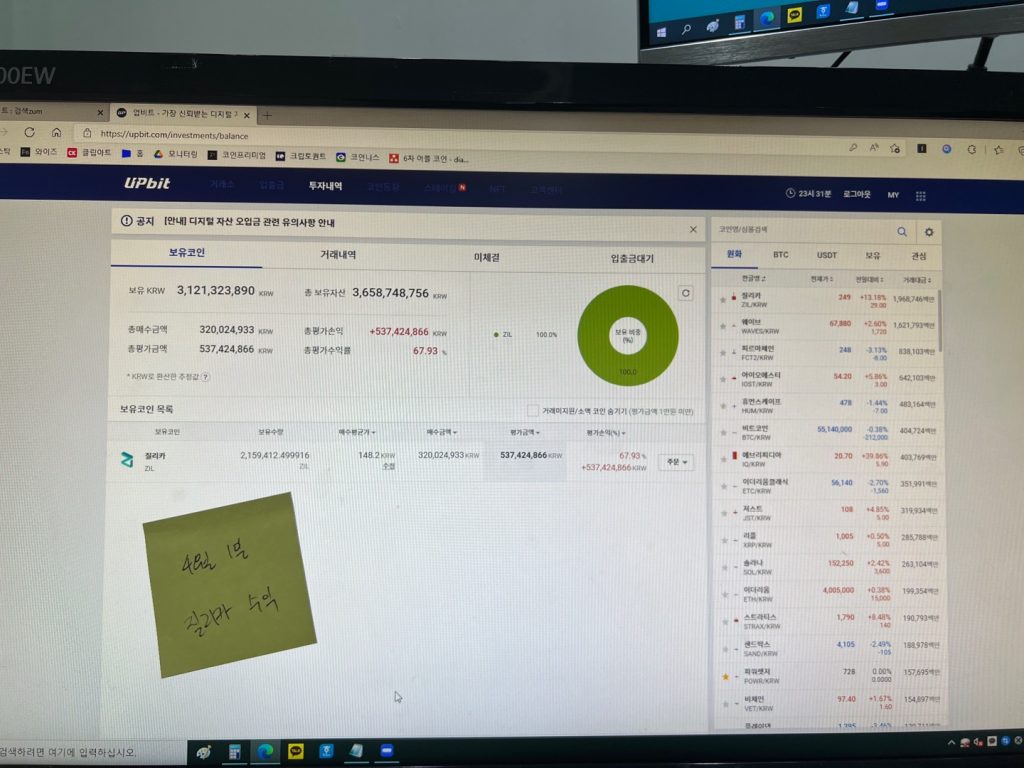 제가 코인하면서 이번이 제일 큰게 수익 번것같아요.