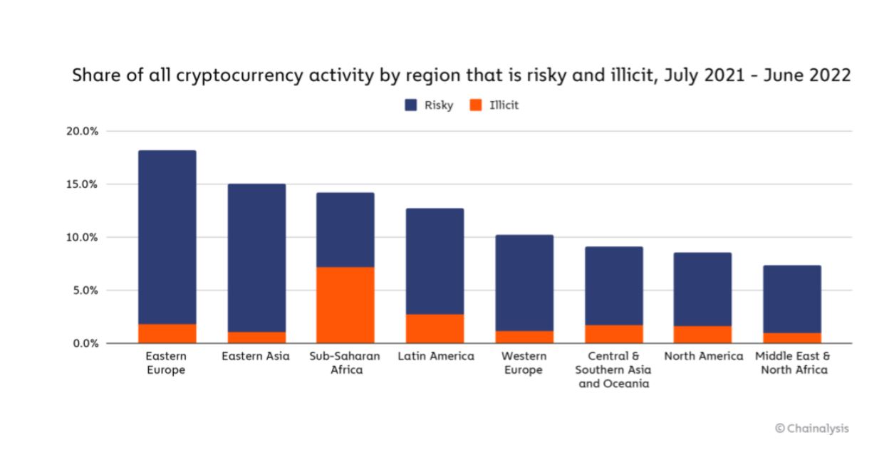 동유럽 지역 암호화폐 거래 중 ‘고위험’이나 ‘불법’으로 추정되는 비율은 18.2% 수준이다.