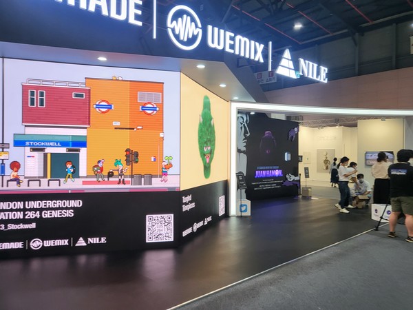 먼저 '키아프 서울'에서는 위믹스 생태계의 주축이 될 DAO & NFT 플랫폼 ‘나일(NILE)’의 프로젝트를 한눈에 볼 수 있다. 코엑스 그랜드볼룸 내 VIP 라운지에 위치한 부스에서 일러스트레이터 '지하'와 '로초'의 NFT 컬렉션 'London Underground Station 264 Genesis'를 선보인다. 여기에 프렌클리의 신개념 소셜 플랫폼 'Tangled'가 핵심 세계관인 'Time is gold'를 시각 예술로 재해석한 'Tangled Timepiece'를 전시한다.