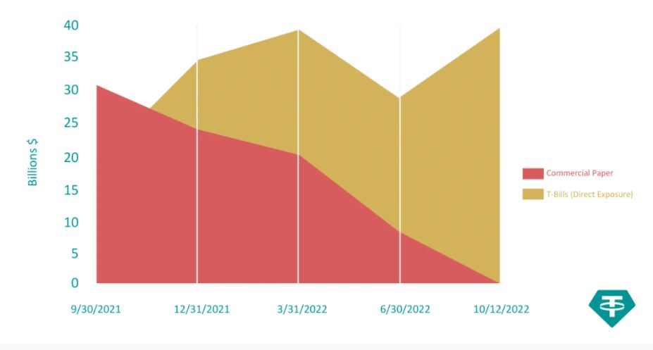 테더는 준비금에서 기업어음을 없애는 대신 미국 재무부 단기재정증권(T-Bills)을 추가했다고 밝혔다.