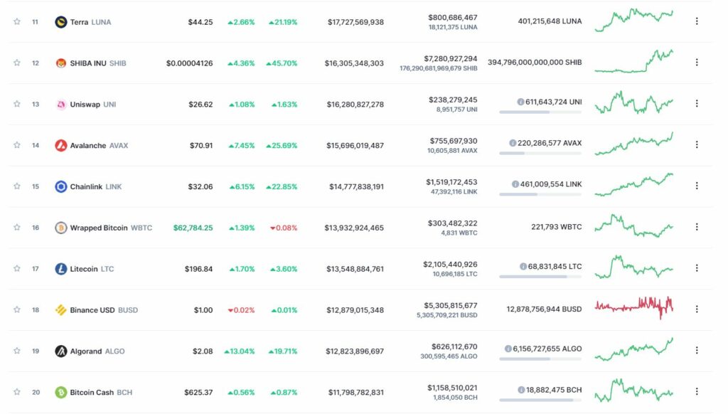 예전에는 한참 밑에 있던 코인들이 많이 치고 올라왔네요.