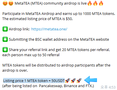 현재 토큰개발자는 상장시 1개당 50 USDT