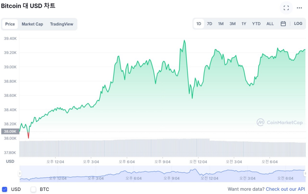 BTC(비트코인)이 3만9000달러(약 4839만원)부근에서 안정세를 보인 가운데 가상자산 시장은 혼조세를 나타냈다.