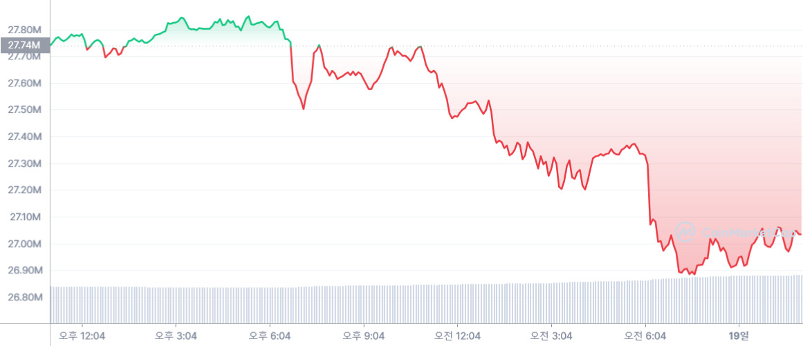 비트코인 24시간 가격 차트. 출처=코인마켓캡