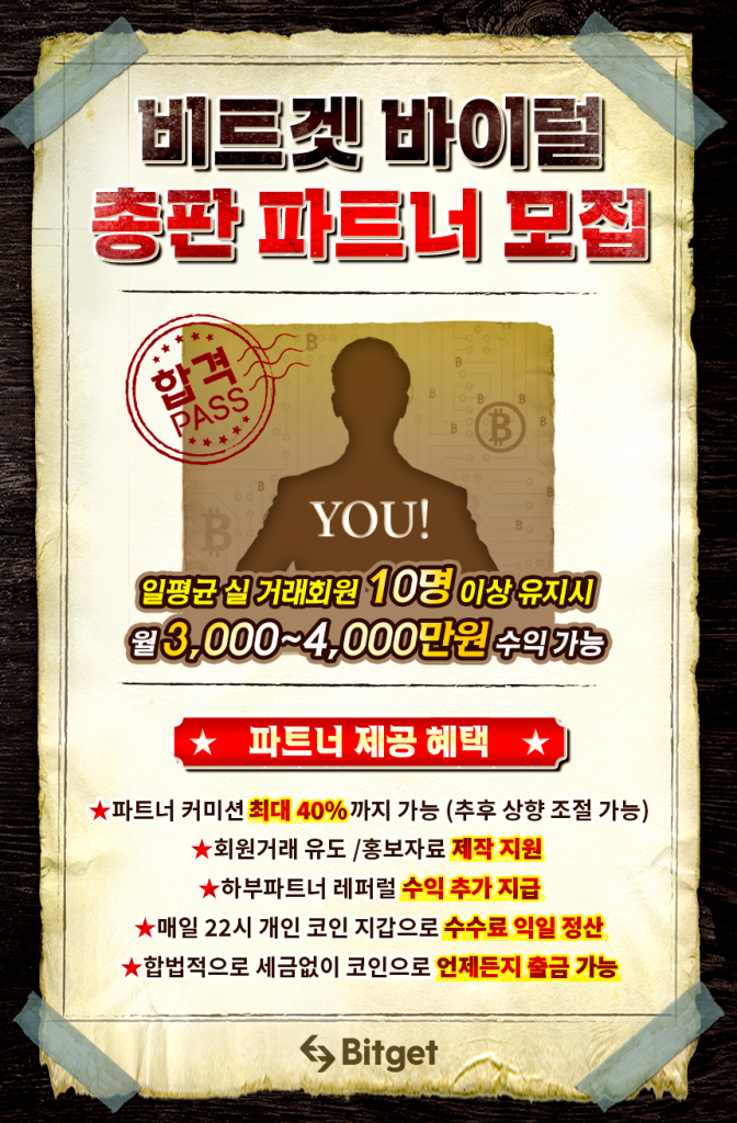 안녕하세요! 선물거래 거래소 NO.1 비트겟 코리아 공식 파트너입니다. 선물거래 일등 비트겟 파트너 모집 ◆ NO.1 제휴 리딩방 무료 지원 ◆ ◆ NO.2 파트너 커미션 40% 추후 상향 가능 ◆ ◆NO.3 매일 22시 수수료 정산 ◆ ◆ NO.4 하부 파트너 모집 시 수수료 추가 정산 ◆ ◆ NO.5 홍보 자료 제작 지원 / 미거래 유저 관리 지원 ◆ ※회원들이 거래하였을 때 모든 수수료 (매매 체결 1번, 익절과 […]