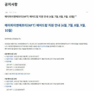 에이피이앤에프티(NFT) 에어드랍 지원 안내 (6월, 7월, 8월, 9월, 10월)