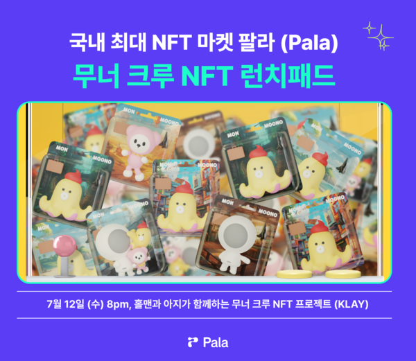 대체불가능한토큰(NFT) 마켓을 운영하는 팔라는 런치패드를 통해 오는 7월 12일 LG유플러스의 대표 캐릭터인 '무너(Moono)'를 활용한 NFT인 '무너 크루' NFT 프로젝트를 민팅(발행)한다고 28일 밝혔다.